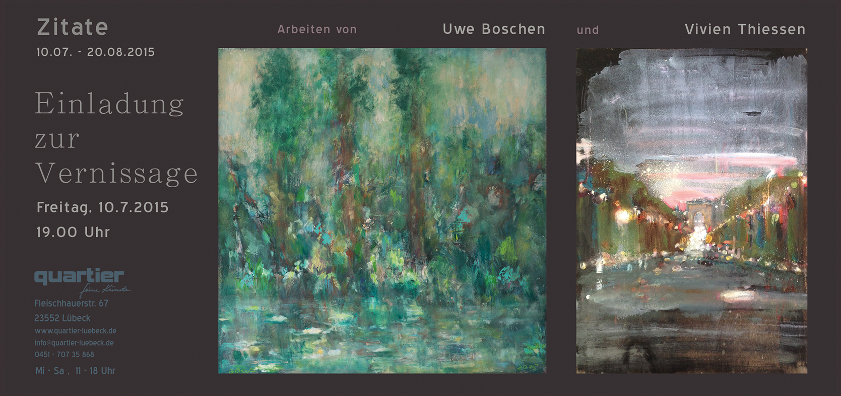 | quartier - feine Künste | Fleischhauerstrasse 67 · 23552 Lübeck · info@quartier-luebeck.de · Tel. +49 451 707 35 868 |